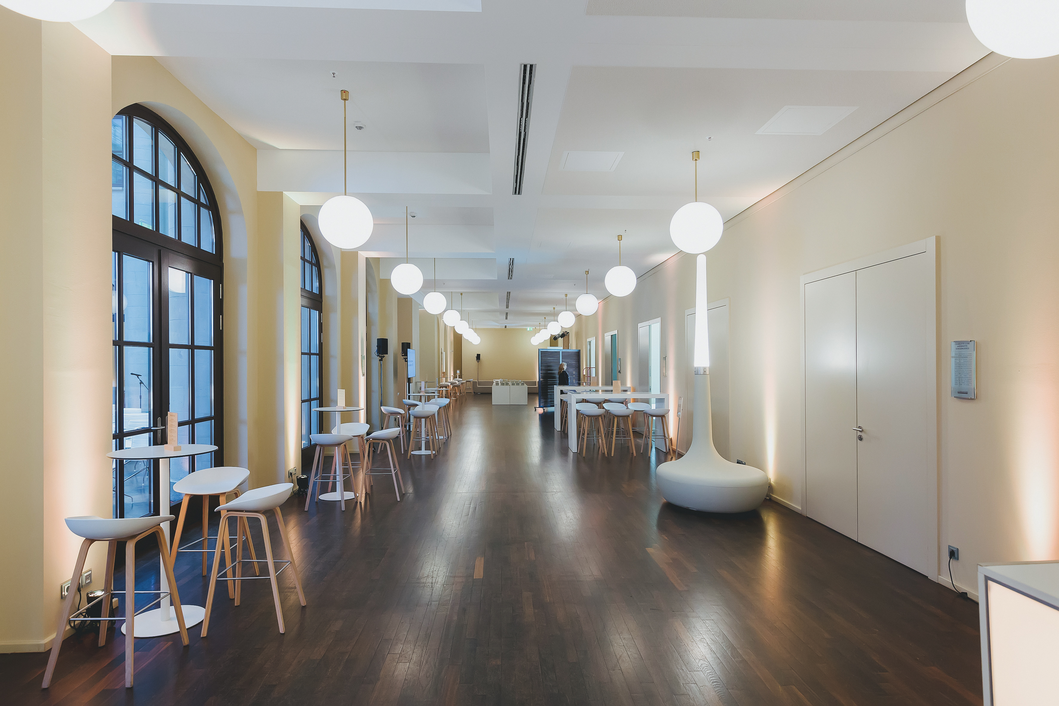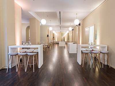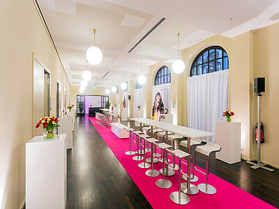 Der großzügige Bereich im Humboldt Carré passt sich flexibel an die Anforderungen Ihres Events an. Das „Alter Fritz“ bietet ausreichend Platz für Registrierungsdesks, heißt Ihre Gäste willkommen, dient als ideale Bühne für eine Fotowand mit rotem Teppich und verwandelt in Veranstaltungspausen den Bereich zu einer stilvollen Cateringarea. Zudem eignet sich der Alte Fritz sich hervorragend für Stehempfänge.