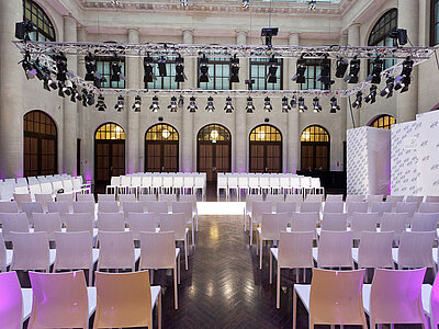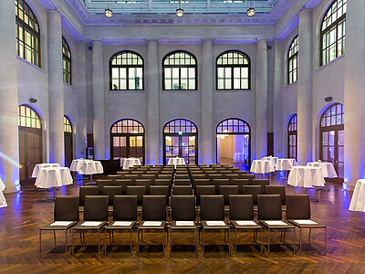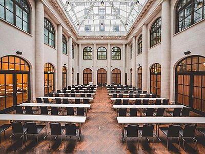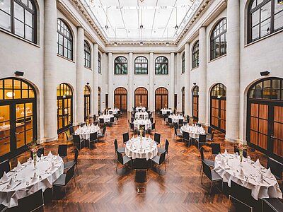 Stellen Sie sich vor: Eine imposante Kulisse im italienischen Palaststil mit eleganter Sandsteinfassade und edlem dunklen Eichenparkett und einer Glaskuppel, die Ihren Anlass in ein außergewöhnliches Erlebnis verwandelt. Ob inspirierende Tagungen, wegweisende Kongresse, stilvolle Präsentationen oder ganzvolle Dinner – bis zu 300 Gäste finden hier den perfekten Rahmen.