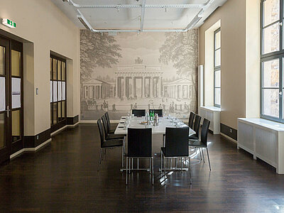 Erleben Sie smarte moderne digitale Raumbeschilderungen, auf Wunsch eine flexible kleine Bühne und modernste Konferenztechnik – alles bei natürlichem Tageslicht. Das elegante Ambiente schafft die ideale Atmosphäre für erfolgreiche Events, bei Bedarf ergänzt durch den angrenzenden Raum Theodor Fontane für erstklassiges Catering und ungestörte Momente.