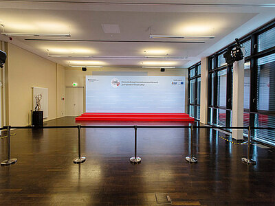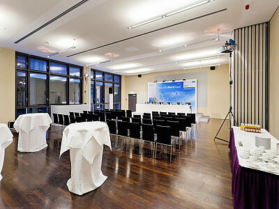 Vielfältige Möglichkeiten bei Podiumsdiskussionen, Tagungen, Pressekonferenzen für Workshops, oder Präsentationen ergeben sich durch dieses Raumwunder.
